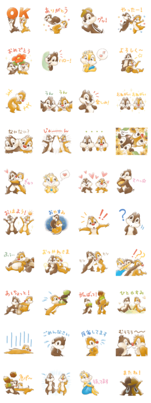 ほんわかとしたタッチがかわいいチップとデールのスタンプが登場♪チップとデールらしい明るい雰囲気で家族やお友達とのトークを盛り上げよう!