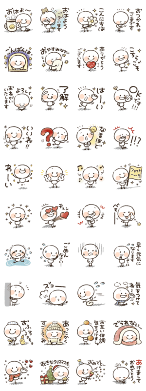 いつもよりちょっとラフな線のスマイル棒人間♡大人可愛いシンプルで使いやすいスタンプです♪よく使う挨拶リアクション/冬/クリスマス/お正月/気遣い/見やすい文字
