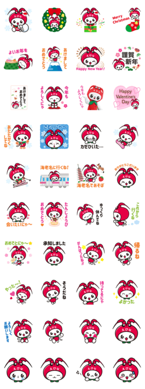 海老名市イメージキャラクター「えび~にゃ」の公式スタンプ第二弾!クリスマスやお正月など冬のイベントに使えるスタンプがメインにゃ~!海老名市 より発売