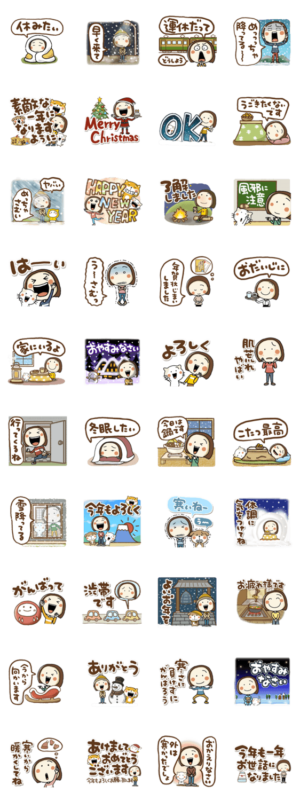 冬のらんちゃんスタンプです。時々猫や犬も出てきます。takopon より発売