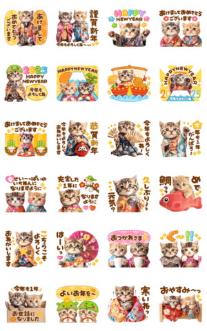 飛び出す♡猫にゃんこの年末年始 スタンプ画像一覧