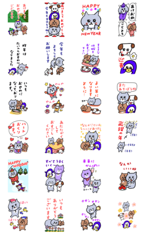 BIGスタンプで祝う灰色キャットと仲間たちのお正月。※あけおめスタンプ2024「ずっと使える灰色キャットのお正月BIG」の再販版になります。