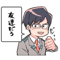 僕のヒーローアカデミア、 1年A組の委員長、飯田くん中心のスタンプです。 時々デクや轟くん達A組の仲間達もいます。 ※LINE Creators Collaboration 僕のヒーローアカデミア参加スタンプです。瀬田 より発売