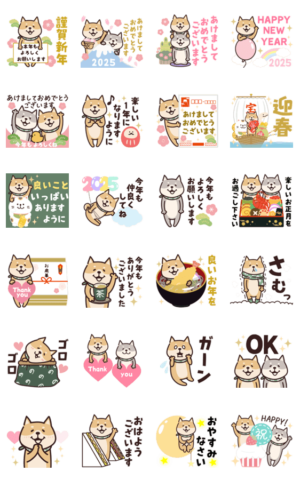 しば犬が画面いっぱいに飛び出すスタンプ♡年末年始や日常で使える言葉が入っています♪chaco より発売