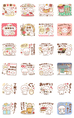 ふんわり可愛い❤️毎年使えるお正月 スタンプ画像一覧