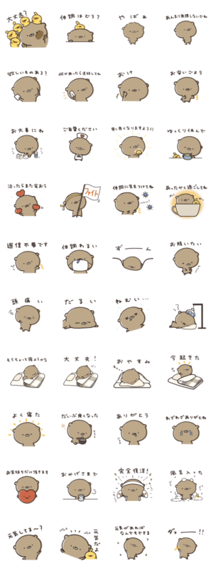 のんびりだらだら、くまのぽんこつの風邪のスタンプ。体調が悪いときや、誰かを気遣いたいときに使えるスタンプがたくさん入っています。Uihei より発売
