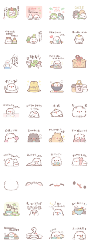 ポメラニアンもち達の年末年始につかえるスタンプです!2025年巳年の期間限定バージョンだよ。mal より発売