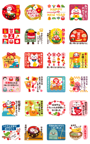 飛び出す!ちょっと大人の毎年使える正月-再 スタンプ画像一覧