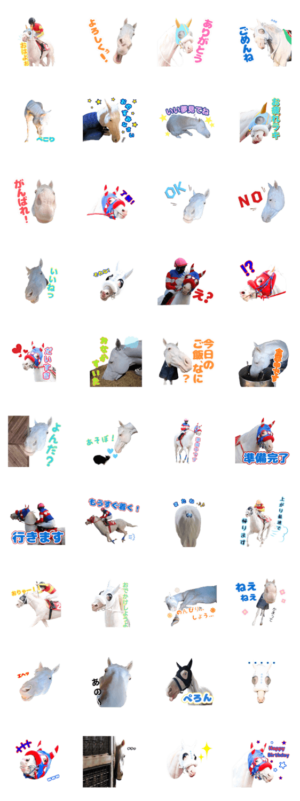 白毛の競走馬アオラキのスタンプです。馬好き、競馬好きな方とのやり取りやプレゼントにいかがですか? オーナーより肖像権使用許諾取得済み。Aoaki より発売