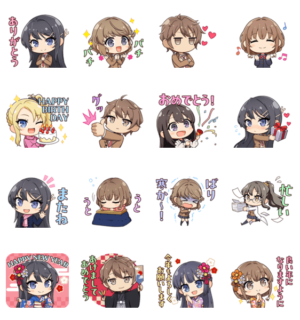 アニメ「青春ブタ野郎」シリーズのミニキャラLINEスタンプが登場! 誕生日、お正月などお祝い事にぴったりなスタンプも♪株式会社インクルーズ より発売