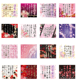 飛び出す! ずっと使える和花柄華やか年賀状 スタンプ画像一覧