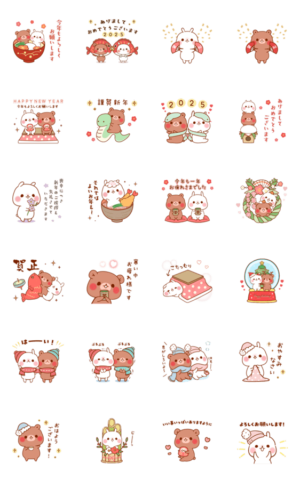 【2025】動く年末年始♡ちびうさ&ちびくま スタンプ画像一覧