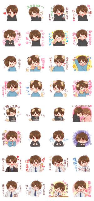 大切な人と使えるスタンプの男の子バージョンです♪ 友達や彼女、家族との連絡にも♡( ^ω^ )toco より発売