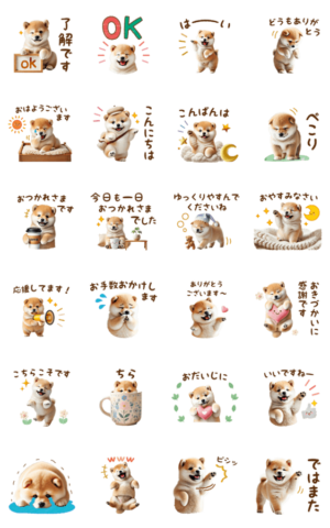 大人でも使いやすい敬語を中心に、相手をやさしく気づかえるスタンプです。挨拶など日常的に毎日使うものから、お仕事やリアクションにも使える☆しばいぬ/まめしば/柴犬