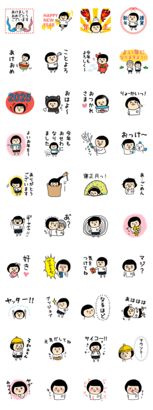 年末年始に使いやすくて楽しいスタンプにしてみました!クスっと笑っていただけたら幸いです♪chibo より発売