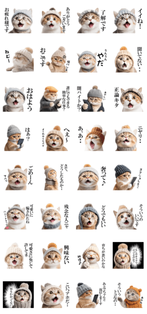 ニット帽子が可愛い猫です ねこ/ネコ/かわいい/日常会話/感情表現/毒舌/煽り/驚き/動物セイコウ より発売