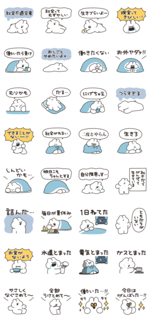 社会不適合者のうさぎのスタンプです。ナポリ より発売