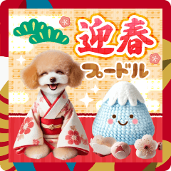 誰でも毎年使える☆かわいい和装をした子犬の年末年始の飛び出すスタンプです。新年の挨拶/あけまして/正月/新年/あけおめ/年賀状/敬語/気遣い/トイプードル