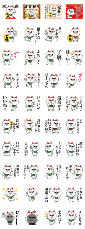 幸運の招き猫の目ヂカラ☆にゃんこです。日常使いできるスタンプ、お正月・年末年始に使えるスタンプも入っています。