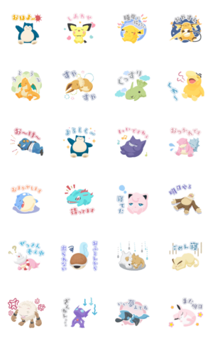 ポケモンたちのさまざまな寝顔を描いたスタンプが登場!なんともゆる〜い雰囲気のスタンプは、ご家族やお友だちとの日頃のやりとりを柔らかくて楽しいものにしてくれますよ(株)ポケモン より発売