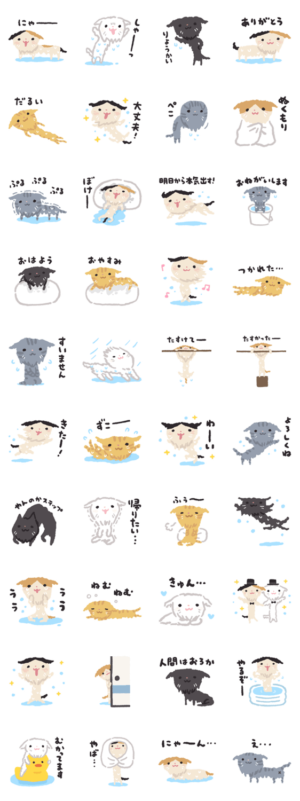 濡れて細くなった猫のスタンプですみふねたかし より発売