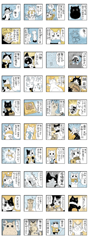 寒い寒い言ってる猫のスタンプです。山野りんりん より発売