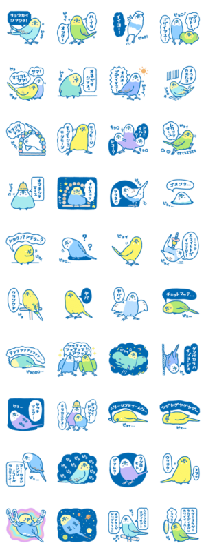 おしゃべり好きなセキセイインコちゃんたちのスタンプです。なみへい より発売