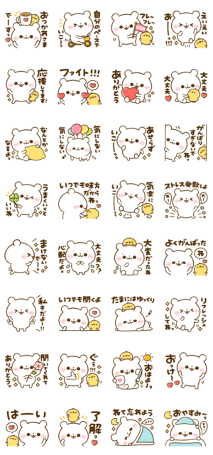応援・励まし・共感したり色々な気持ちを届けるふわもこ白くまさんのスタンプです。ぴよたぬき より発売