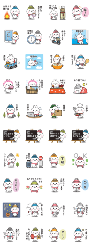 寒い冬に使える♪可愛いうさぎさんの連絡スタンプです。パン より発売