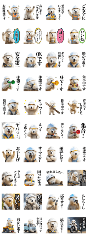 しろくまの現場仕事のスタンプです。ご安全にBrody Machine より発売