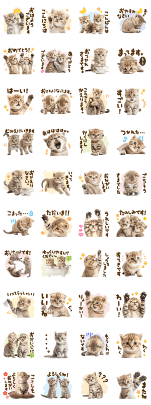 かわいい子猫たちのスタンプです。敬語・挨拶・便利・気づかい・毎日・日常・ネコ・年末年始YOSHITAKE より発売
