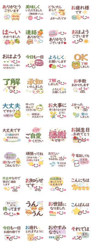 一回で気持ちが伝わる便利なスタンプです。挨拶/でか文字/食べ物/毎日使える/年中使える/日常アルク より発売