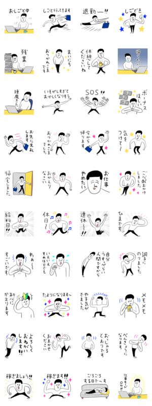お仕事に関するワードがたくさん入っていて使いやすいスタンプです!まめ より発売