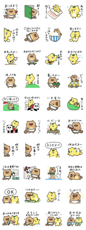ず~っと使える家族の連絡_タヌキとキツネ スタンプ画像一覧