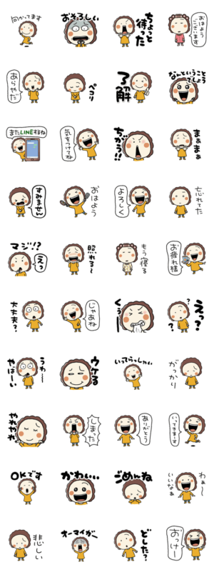 表情豊かで楽しいお母さん。ママ、おかん、おばちゃん。トークが楽しくなるスタンプです。takopon より発売