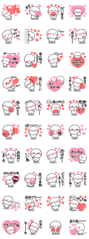 しろまるがハートと共に気持ちを伝えます。 恋人にも友達にも家族にも使いやすい内容ですいしいともこ より発売