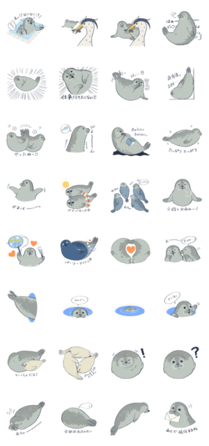 よりフランクに日常に添えるアザラシスタンプ(第3弾)です。他のスタンプっ組み合わせて遊べます。田中ともこ より発売