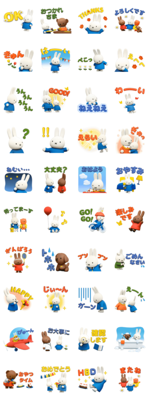 CGアニメ「ミッフィーのぼうけん」をモチーフにしたスタンプが登場!あざやかなカラーで文字も見やすいデザイン♪ミッフィーのいきいきとした表情にも注目です。