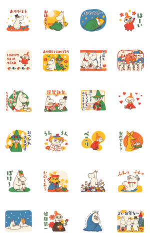 どこか懐かしさを感じる、レトロで可愛いムーミンと仲間たちのアニメーションスタンプが登場♪日常会話から年末年始のご挨拶まで盛り沢山♪(あけおめスタンプ2024対象)Moomin Characters より発売