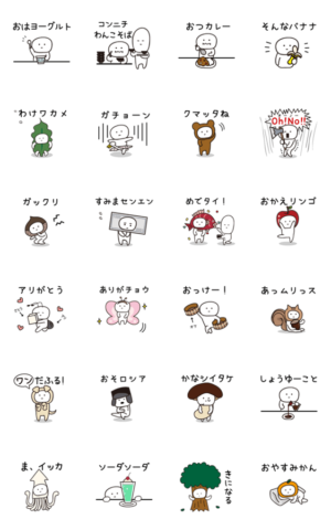 動く!まるがおくんと顔長くん第二弾ダジャレ編!白くて丸くてシンプル!そんなバナナ,おはヨーグルトの定番挨拶も。子供から大人(学生から社会人)まで毎日使えるよ。mugiko より発売