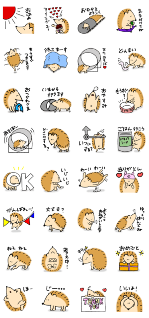 ハリネズミの日常に使えるスタンプです。pppppp より発売