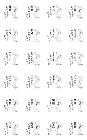 「ドS・ドM・むっつり・ゲス・不倫」等、下ネタトークに使えるセリフをレボリューション化!普通のトークでも使えるセリフも収録しているので変態じゃない人も使えます。ブラフデザイン より発売