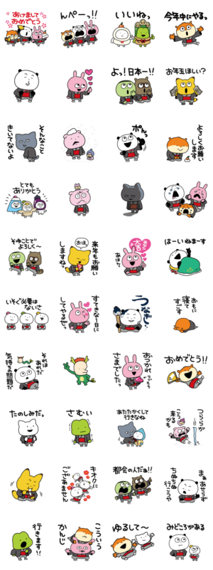 今回は特別に、和服にて集合してみました。どうぞよろしくお願いします。とぅとぅとぅ(あけおめスタンプ2024対象)にしむらゆうじ より発売
