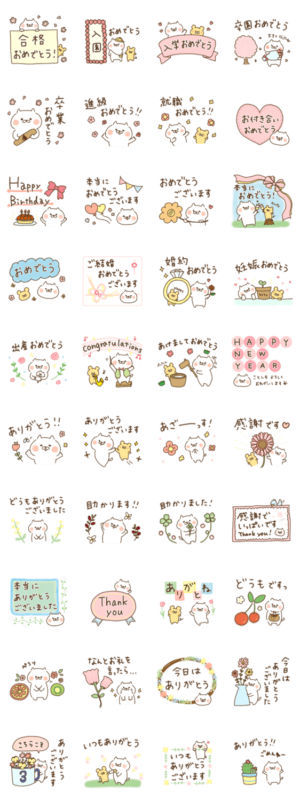 ありがとう&お祝い〜たれ目ネコ〜 スタンプ画像一覧