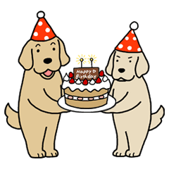 ゴールデンレトリバーのスタンプ第12弾です。子犬の妹が加わりさらに賑やかになりました。猫もいます。