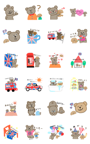 イギリス好きなくまとトイプー スタンプ画像一覧