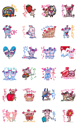 アーティスト「かおかおパンダ」が描くキャラクターがスタンプになりました。第3弾はかわいいブタさんがたくさんだよ