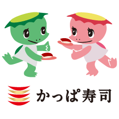 回転寿司かっぱ寿司のイメージキャラクター 「カーくん」「パー子ちゃん」のスタンプです。 お寿司にちなんだスタンプもあるよ〜。