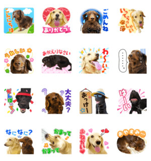氷川きよしの愛犬ココアちゃん・ミルクちゃん・クロちゃんがスタンプで登場!!かわいいスタンプでトークを盛り上げましょう♪