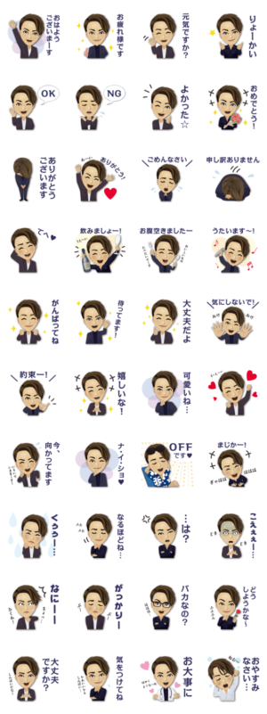 銀座で働く甘めイケメンがモデル。大事なお客様や目上の方にも使える礼儀正しく清潔感あるスタンプです。普段は甘く、ときには厳しく使いこなしてください。りょりそん より発売